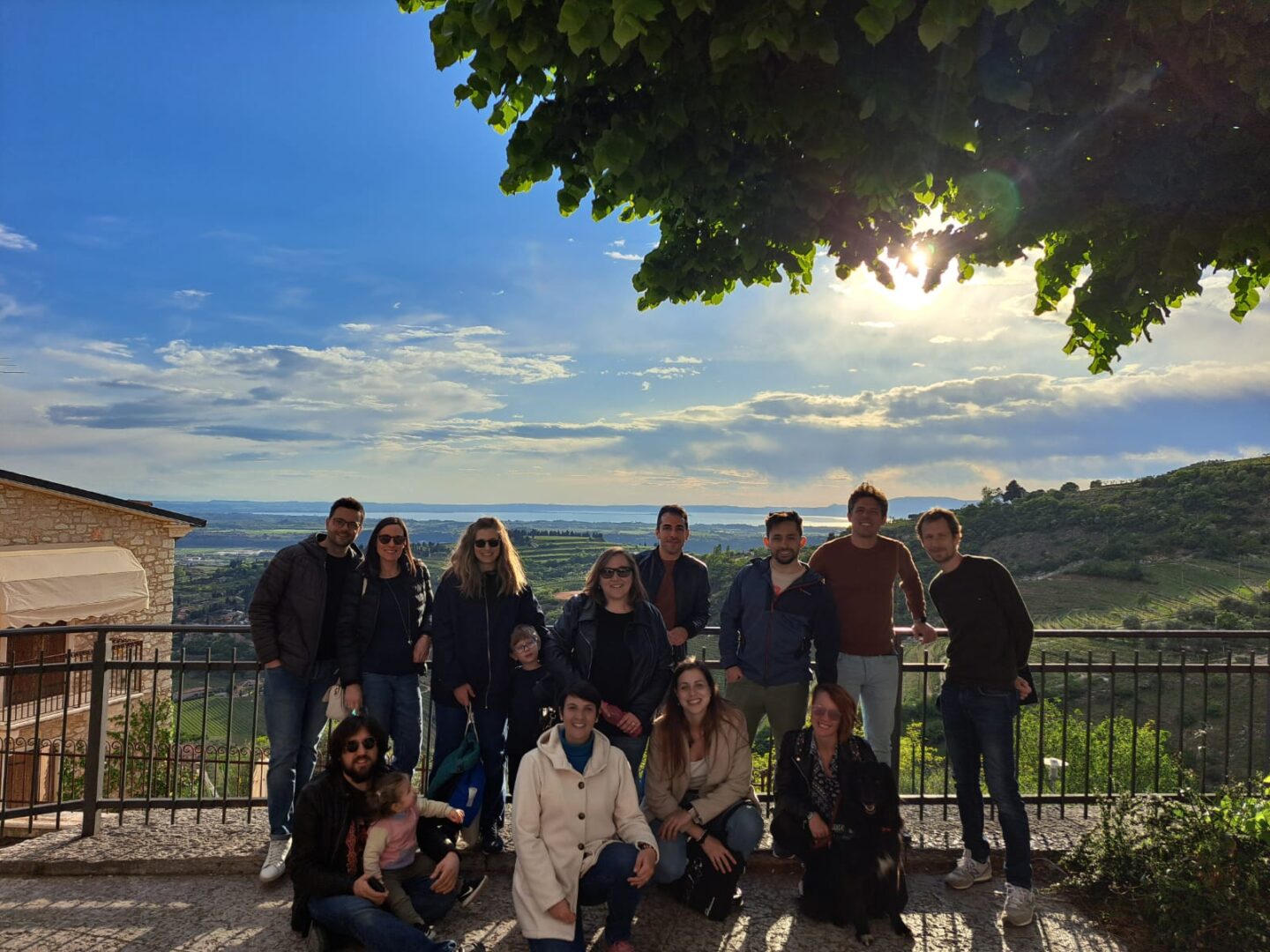 Si fa orario per riunirsi tutti, a questo punto il gruppo è al completo e carico per trascorrere la cena tutti assieme. Ma prima facciamo una visita al paese che si trova poco sopra: San Giorgio di Valpolicella. E’ un borgetto costruito sulla cima della collina e, nonostante sia piuttosto isolato, la piazza è piena di gente soprattutto riunita davanti all’unico bar del paese. Dall’altro lato si apre un bellissimo paesaggio su tutta la vallata, perfetto per la nostra foto di gruppo!